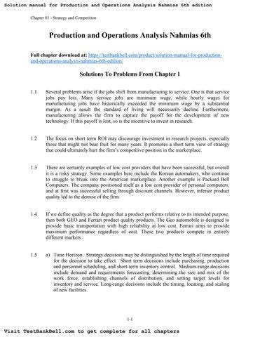 Download online PRODUCTION AND OPERATIONS ANALYSIS SOLUTION MANUAL PDF Library Genesis